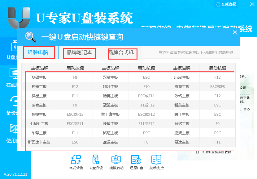 U专家是一款界面美化、操作简单、即下即用的启动U盘制作工具,真正做到了一键下载,一键安装,一键装机的便捷,只要轻松一键,电脑就能恢复到最佳状态,电脑城装机和维护人员使用,更专业,更高效,个人用户使用,更简单,更安全。它集成了GHOST系统备份/修复,磁盘分区,内存测试等系统重装和维护的功能,支持所有U盘、各种机型,适用于各种系统。