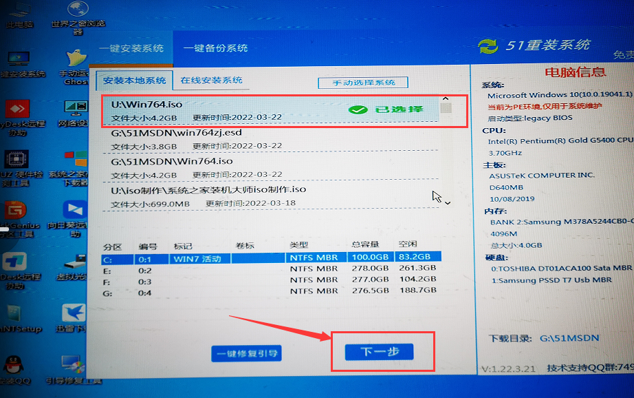 第九步:进入pe桌面后,会自动打开桌面一键安装系统工具,打开后会自动选择U盘里的系统镜像,如果没有选择,就点“浏览”找到U盘里的系统镜像,然后点“确定”就可以了。如果U盘里没有系统镜像,可以点击在线安装按钮,选择您需要安装的系统,确定安装就可以了。